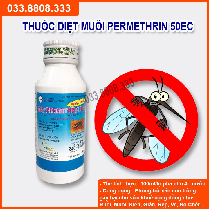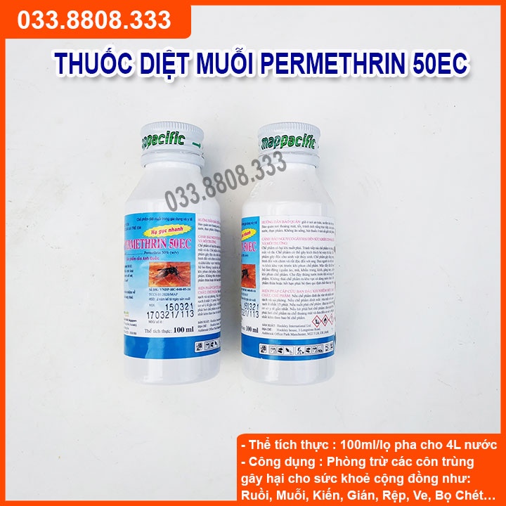 Diệt muỗi Permethrin 50EC (chai 100ml) - Sử dụng nhúng màn và phun trực tiếp