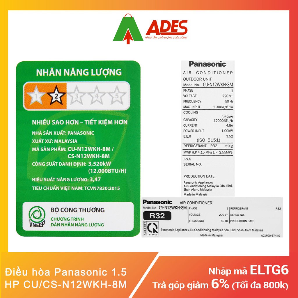 Thiết Bị Điện Gia Dụng > Thiết bị điện gia dụng lớn > Thiết bị làm mát > Điều hòa || [Mã 44ELSALE1 giảm 5% đơn 3 Triệu] Điều hòa Panasonic 1.5 HP CU/CS-N12WKH-8MCòn hàng