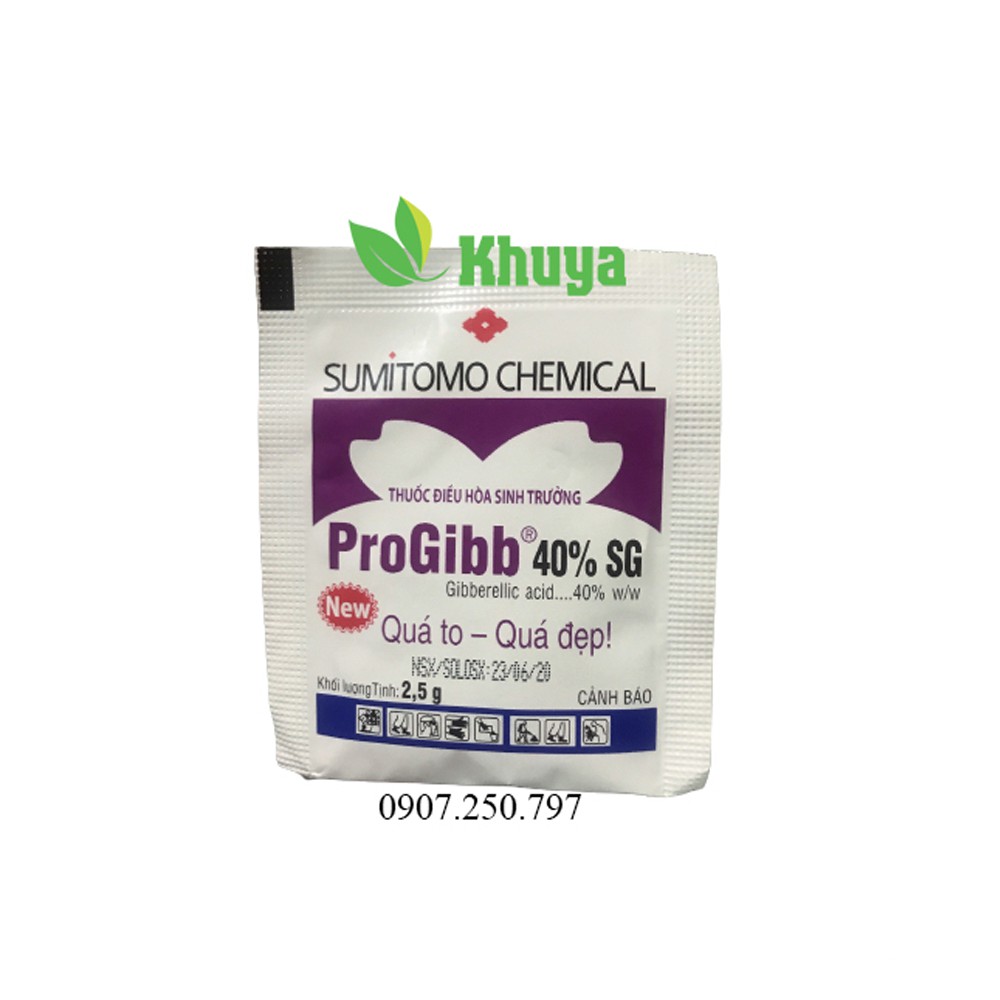 Điều hòa sinh trưởng ProGibb 2,5gr* Thành phần: Gibberellic Acid: 40% w/w
