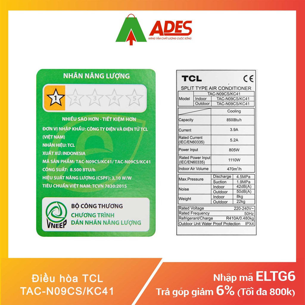 Giới thiệu [Mã 154ELSALE2 giảm 7% đơn 300K] Điều Hòa TCL 1 HP TAC-N09CS/KC41