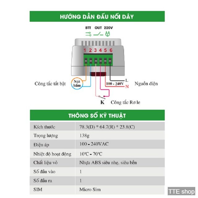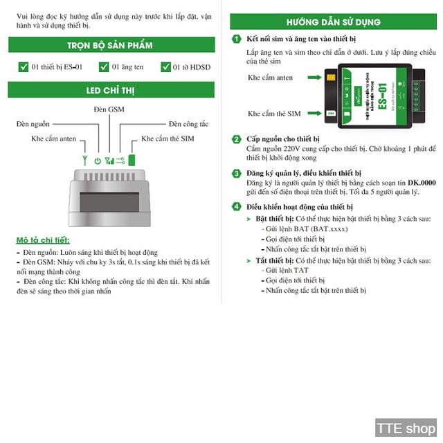 - Kích thước thiết bị ES-01: 10x5x7 cm