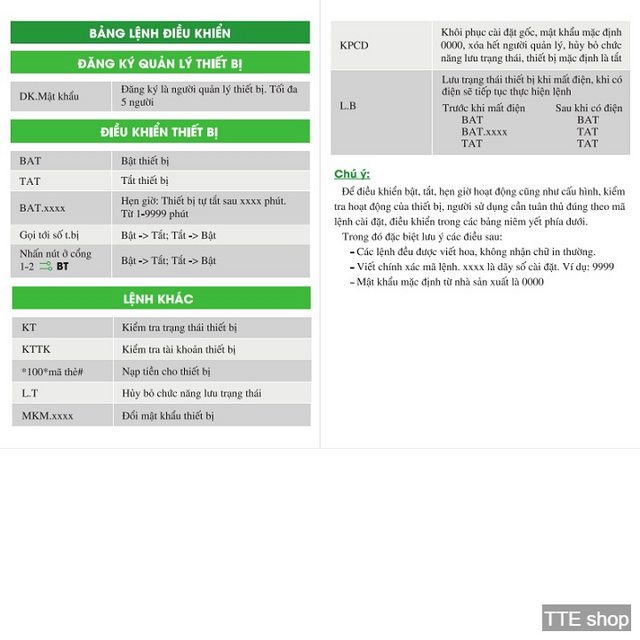 – Bật tắt tự động qua điện thoại bằng cuộc gọi, tin nhắn hoặc nút nhấn