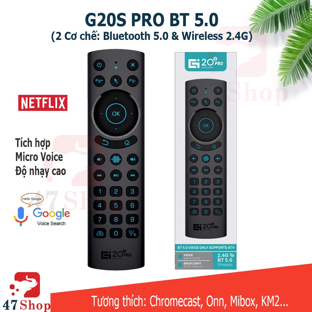 G20s Pro BT có phím Voice để hỗ trợ các Android TV Box hoặc SmartTV chạy HĐH AndroidTV sử dụng chức năng tìm kiếm giọng nói. (Không hỗ trợ cho các thiết bị sử dụng HĐH Tizen, WebOS)