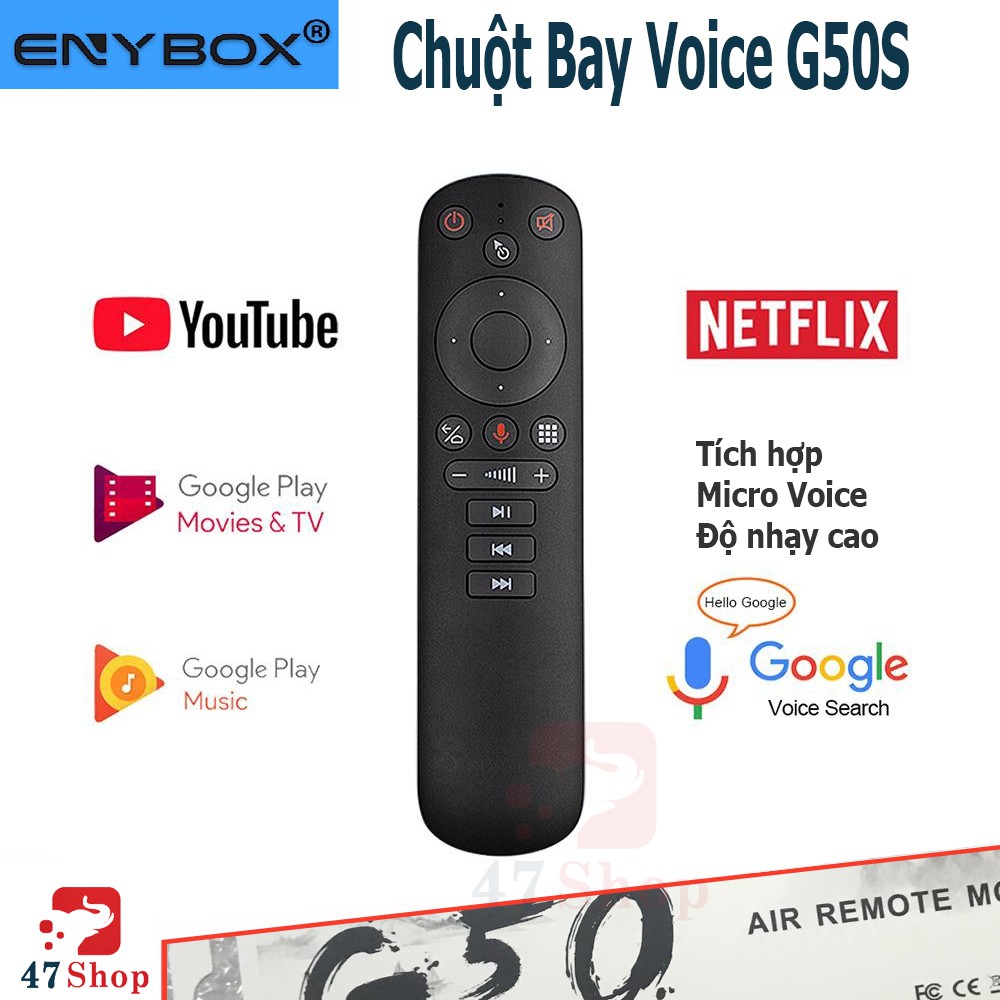 #47Shop giới thiệu chuột bay G50S. G50S là điều khiển có tích hợp chức năng tìm kiếm giọng nói theo cơ chế của Google Assistant và thao tác đơn giản 1 chạm. Ngoài ra điều khiển còn hàng loạt các chức năng khác giúp người dùng sử dụng điều khiển thiết bị Android thuận tiện như các nút #Multimedia.Điều khiển G50s có thể học lệnh 01 phím nguồn từ các điều khiển hồng ngoại khác. Cách học lệnh cũng tương tự như các dòng điều khiển G10, G20, G30... mà 47Shop đã từng giới thiệu trên kênh Youtube. Nếu người dùng không có nhu cầu sử dụng phím học lệnh nữa thì có thể thao tác bấm giữ nút Nguồn và nút back/home trong vòng 5 giây. Điều khiển sẽ tự động khôi phục thiết lập mặc định nhà máy, hủy bỏ chức năng học lệnh