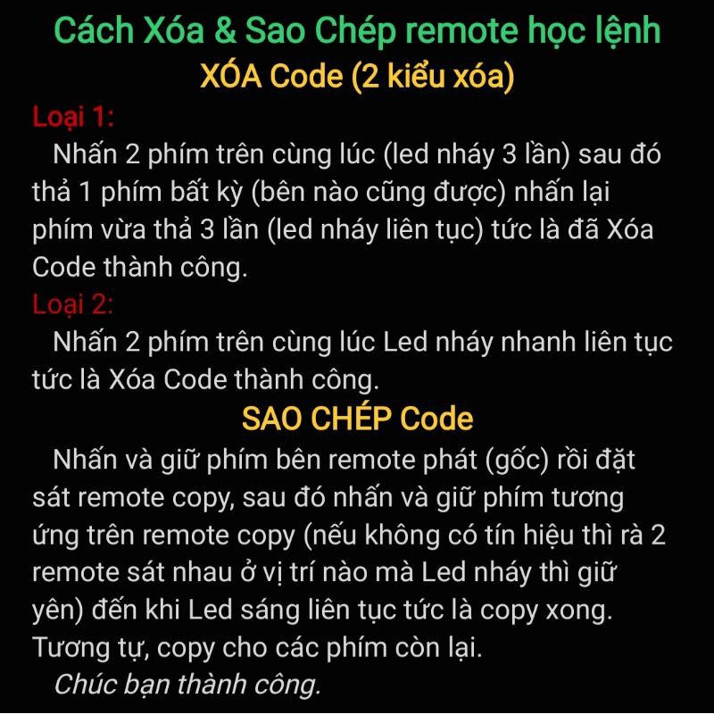 Có thể sao chép hầu hết các remote control loại Fixed code và Learning code theo kiểu Face to Face