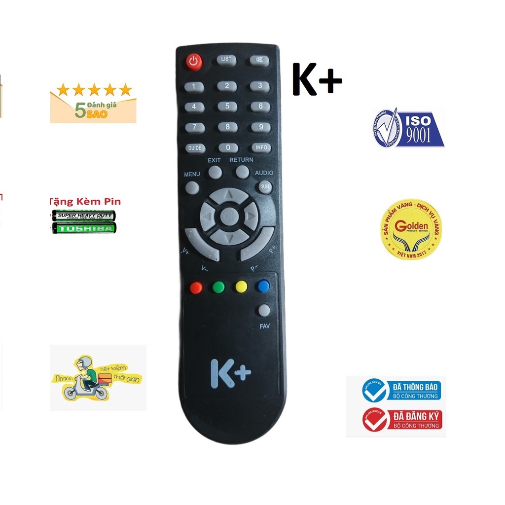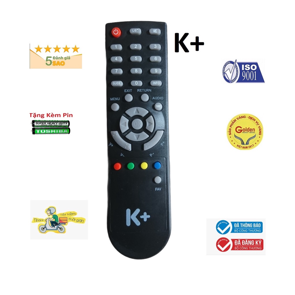 Điều khiển đầu thu K+ - tặng kèm pin chính hãng - Remote K+ - Remote điều khiển đầu thu K+ loại tốt zin theo máy