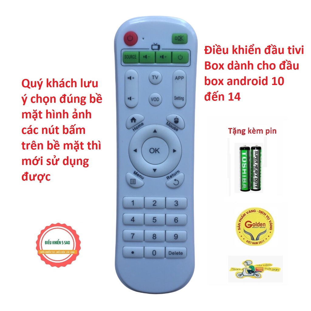 Điều khiển đầu tivi Box mặt trắng dùng cho các loại đầu android box có chạy hệ điều hành android từ 10 đến 14 hiện nay+Quý khách đặt mua phải lưu ý các nút bấm phải giống hệt ban đầu thì mới sử đụng được