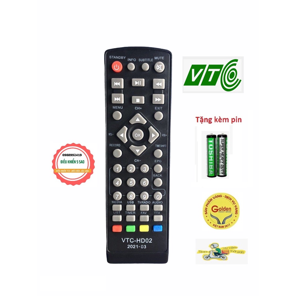Điều khiển đầu VTC HD-02 loại tốt zin theo nhà máy nhà sản xuất - tặng kèm pin chính hãng - Remote VTC HD02