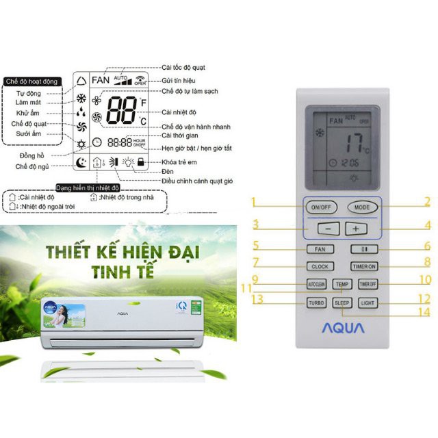 Điều khiển điều hòa AQUA dành cho mùa hè