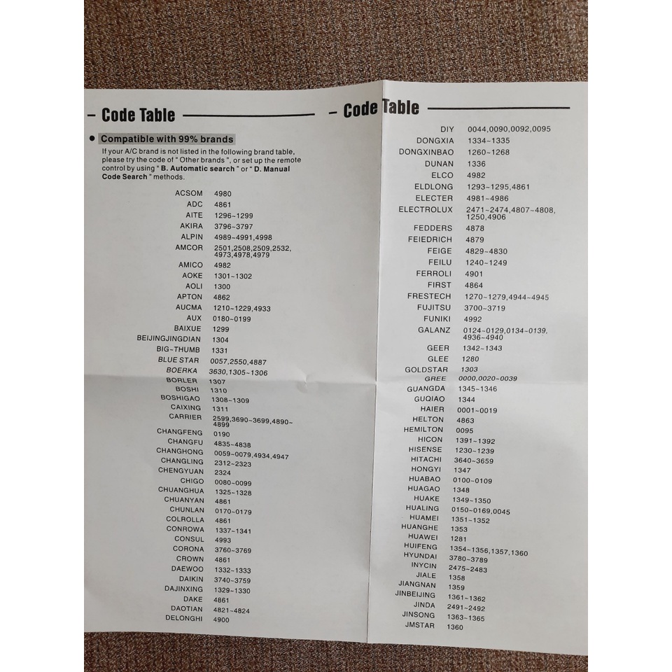 B2. Bấm và giữ nút “SET” (khoảng 3 giây) cho đến khi mã “CODE” máy lạnh (tần số các hãng máy lạnh), lúc này trên màn hình nhấp nháy, nhấn nút tăng/giảm nhiệt độ(▲ ▼) cho đến khi chọn được tần số thích hợp (VD: Tầng số máy lạnh Hitachi là 640-659). Khi chọn đúng mã, máy lạnh sẽ hoạt động.