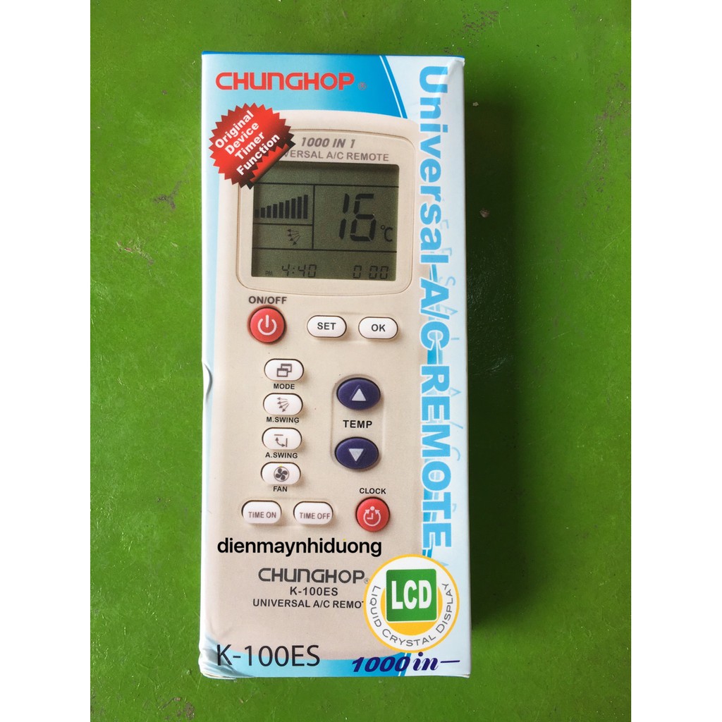 Điều khiển điều hòa đa năng K-100ESDùng cho hầu hết các loại điều hòa hiện nay trên thị trường với các chức năng chính như cài đặt nhiệt độ, tốc độ gió, hướng đảo cành, cài đài hẹn giờ...