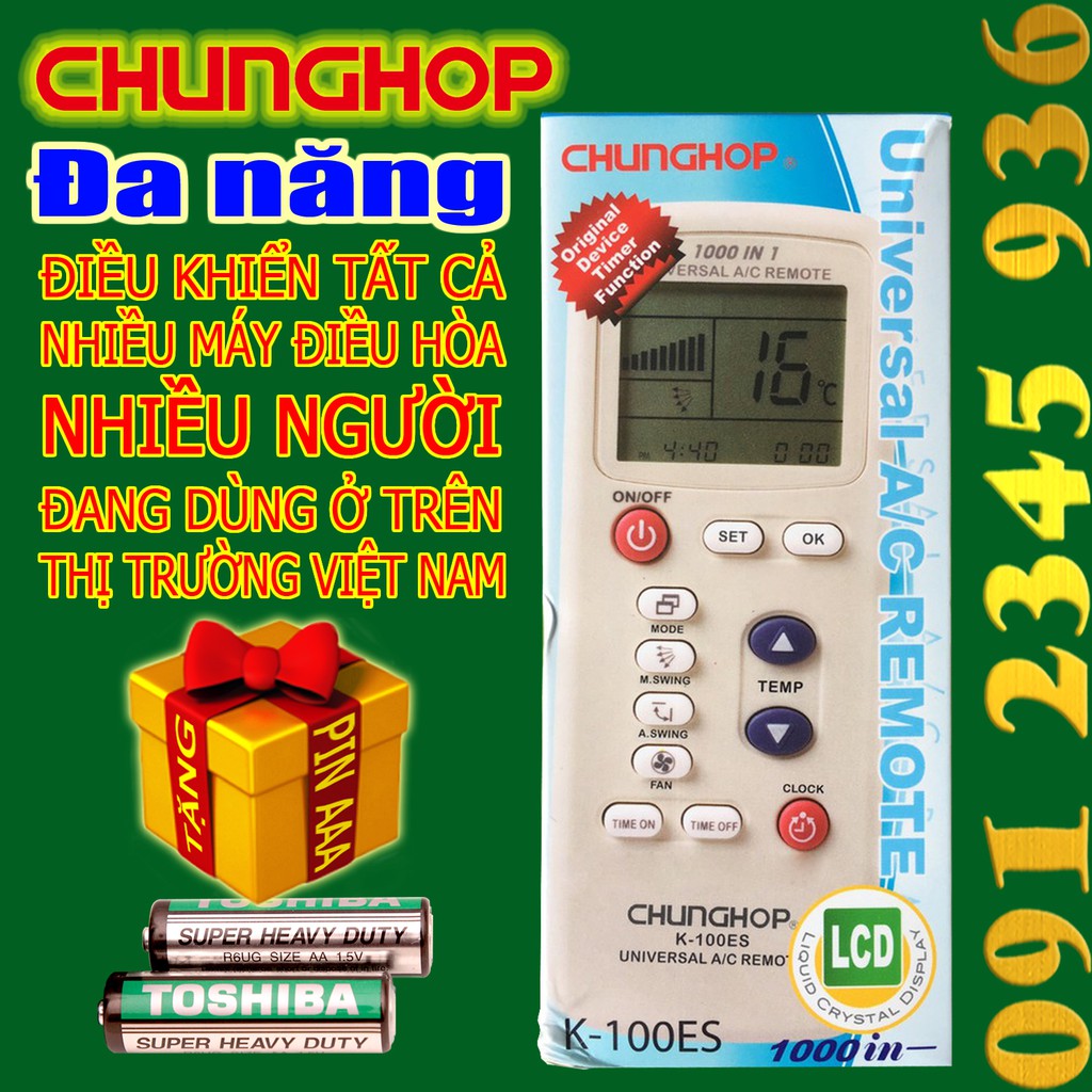 Giới thiệu Điều khiển Điều Hòa "ĐA NĂNG" CHUNGHOP K-100ES "HÀNG ĐẸP" cho điều hòa. (Mẫu số 1)