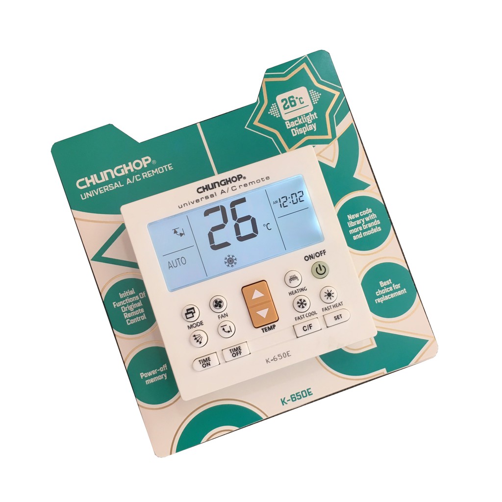 Thông số sản phẩm:Remote máy lạnh đa năng K-650E CHUNGHOP