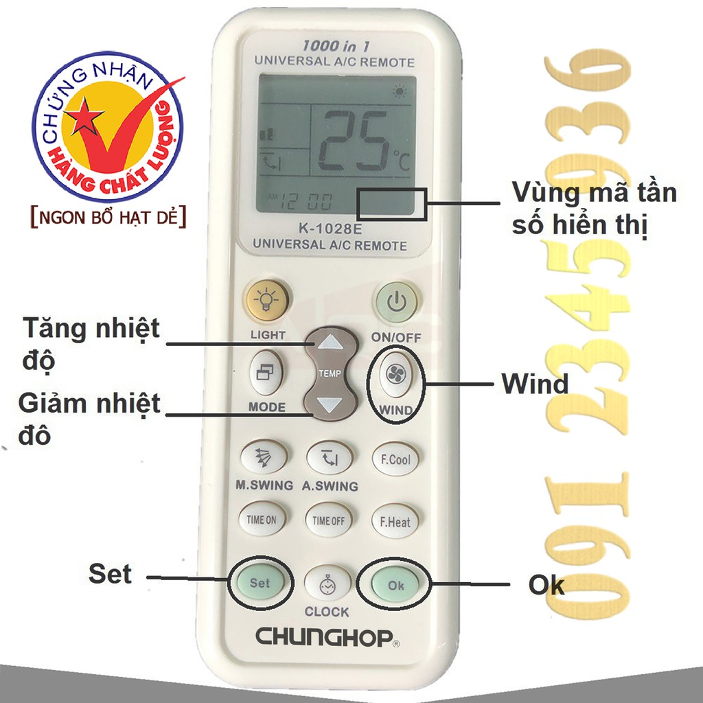 Giới thiệu Điều khiển Điều Hòa "ĐA NĂNG" CHUNGHOP K-1028E "HÀNG ĐẸP" cho điều hòa. (Mẫu số 2)