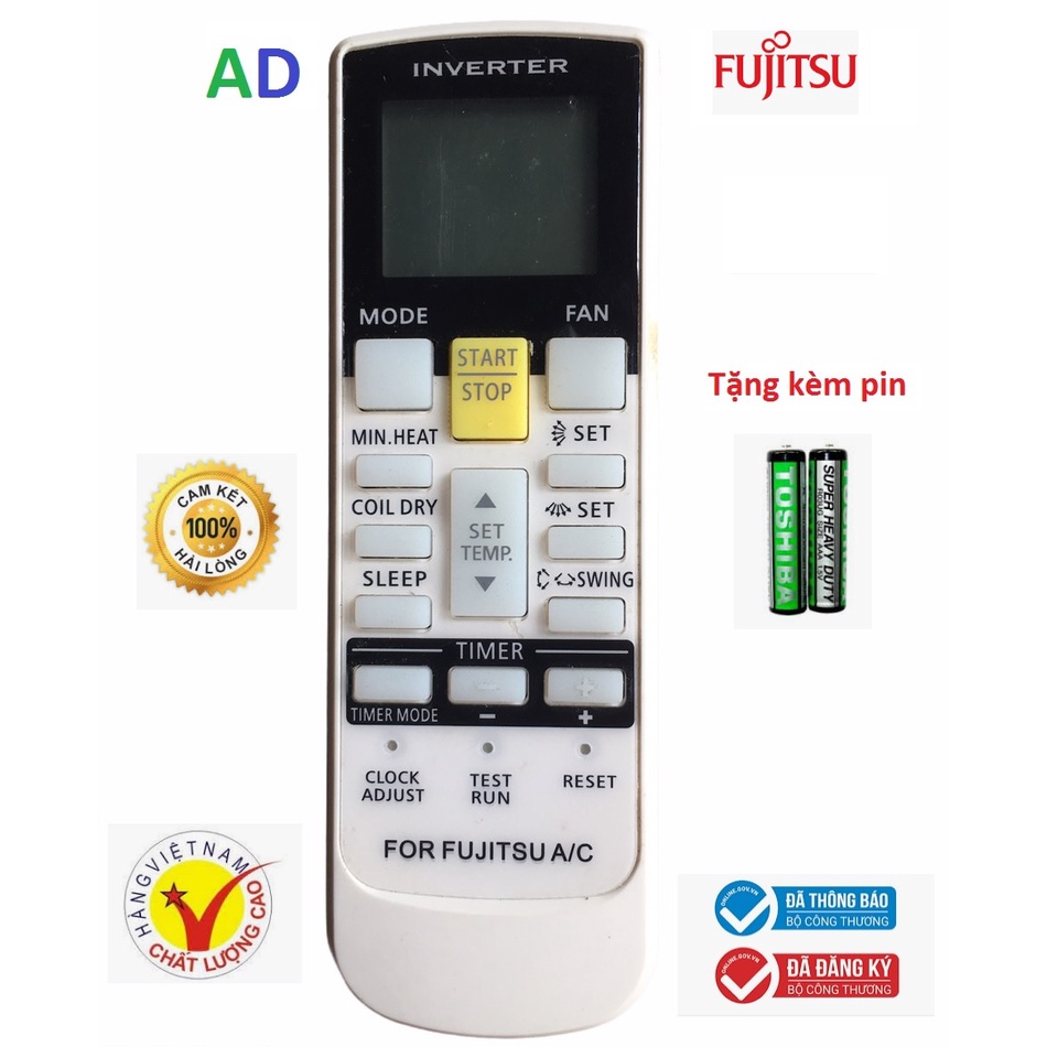 Giới thiệu Điều khiển điều hòa Fujitsu AR-RAE2U nút vàng ở giữa - Tặng kèm pin - Remote Fujitsu - Remote máy lạnh Fujitsu AR