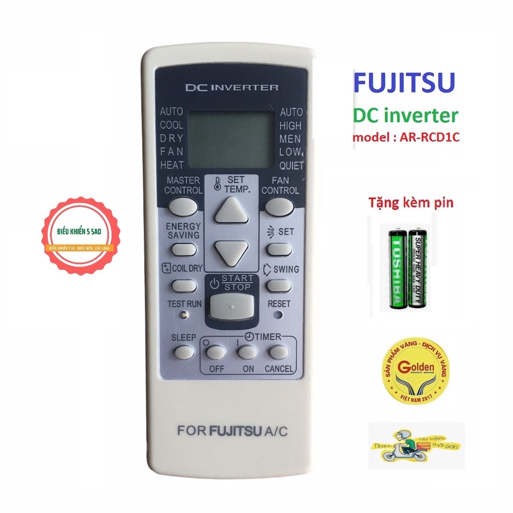 Mô tả sản phẩm :Điều khiển điều hòa Fujitsu AR-RCD1C loại tốt dùng cho 1 chiều và 2 chiều -TẶNG KÈM PIN - Remote Fujitsu AR-RCD1C - Remote máy lạnh Fujitsu loại tốt thay khiển zin theo máy