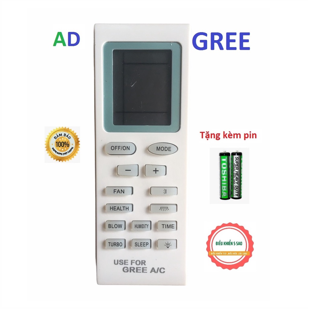Điều khiển điều hòa Gree YB1FA loại tốt thay thế đầu bấm Gree zin theo máy -tặng kèm pin chính hãng - Remote Gree