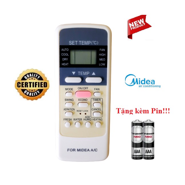 Điều khiển điều hòa Midea các dòng Midea 1& 2 chiều MSAFA MSAF MSAB MSFR- Hàng tốt chỉ cần lắp thêm pin sử dụng ngay không cần cài đặt