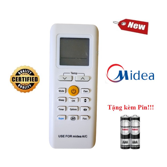 Điều khiển điều hòa Midea các dòng Midea 1& 2 chiều MSAFA MSAF MSAB MSFR- Hàng tốt chỉ cần lắp thêm pin sử dụng ngay không cần cài đặt