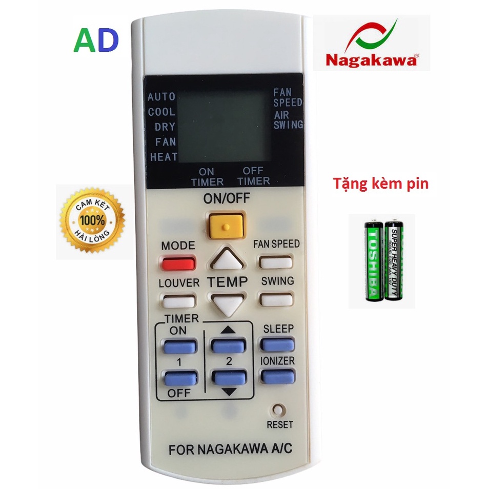 Giới thiệu Điều khiển điều hòa Nagakawa loại tốt dùng thay thế cho khiển zin theo máy - Tặng kèm pin - Remote Nagakawa