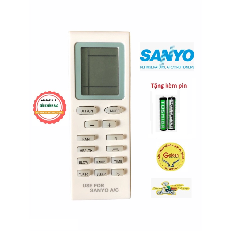 Điều khiển điều hòa SANYO mặt trắng loại tốt thay thế khiển zin theo máy - Tặng kèm pin chính hãng
