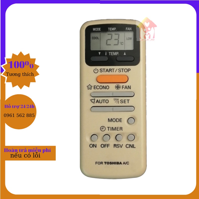 Điều khiển điều hòa Toshiba 2 chiều (Vàng Ngắn)-remote máy lạnh toshiba