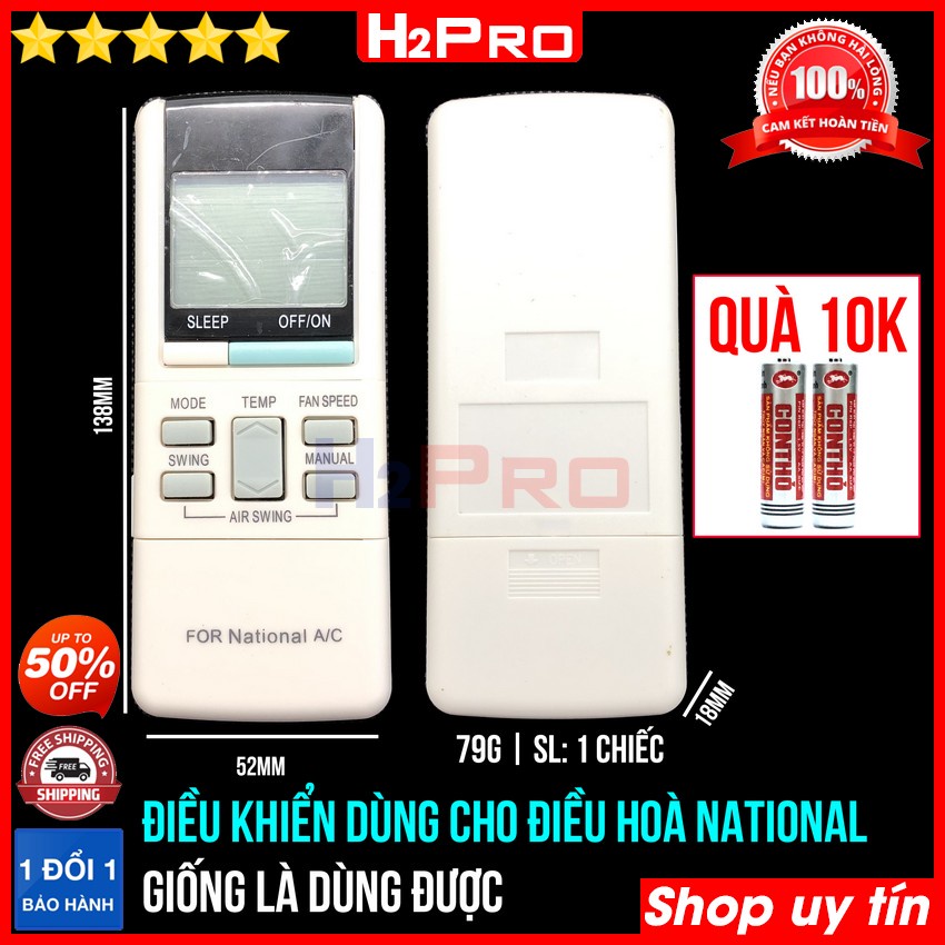 Điều khiển dùng cho điều hòa National H2Pro cao cấp (1 chiếc), remote cho máy lạnh điều hòa National (tặng đôi pin 10K)