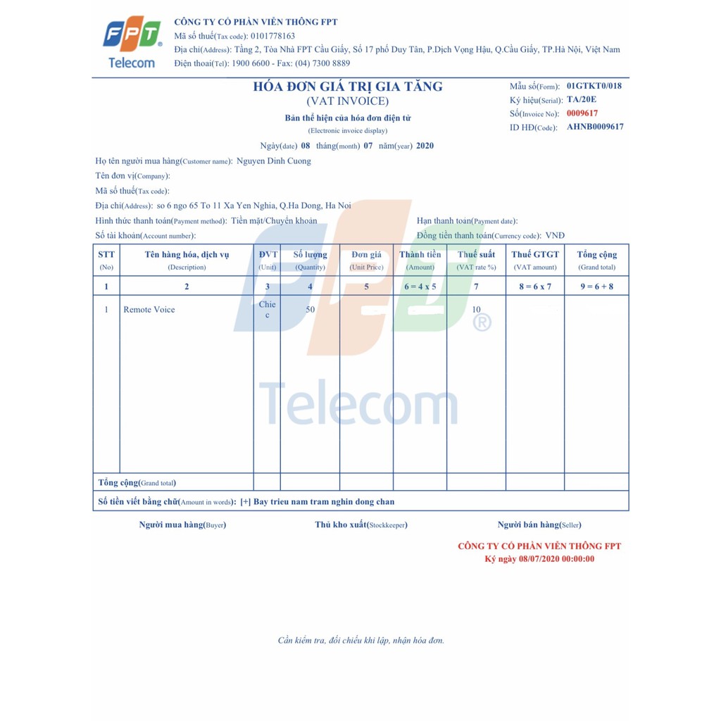 - Đơn Vị Sản Xuất : FPT Telecom