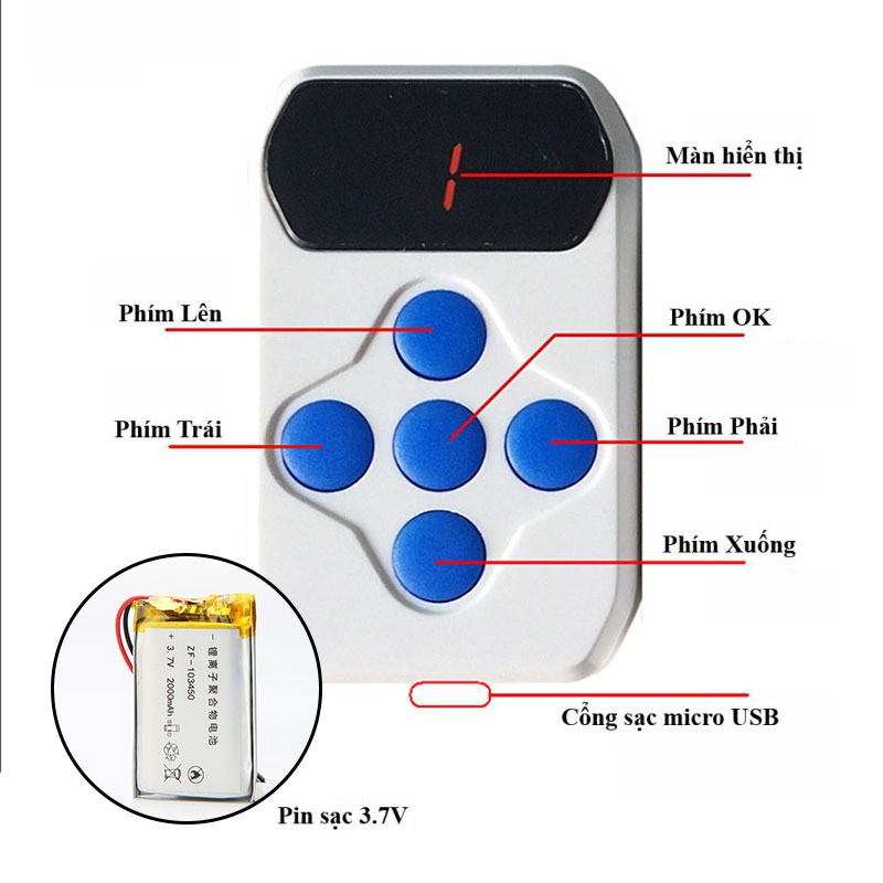 – Mỗi nút có thể tần số khác nhau từ 280Mhz đến 868Mhz