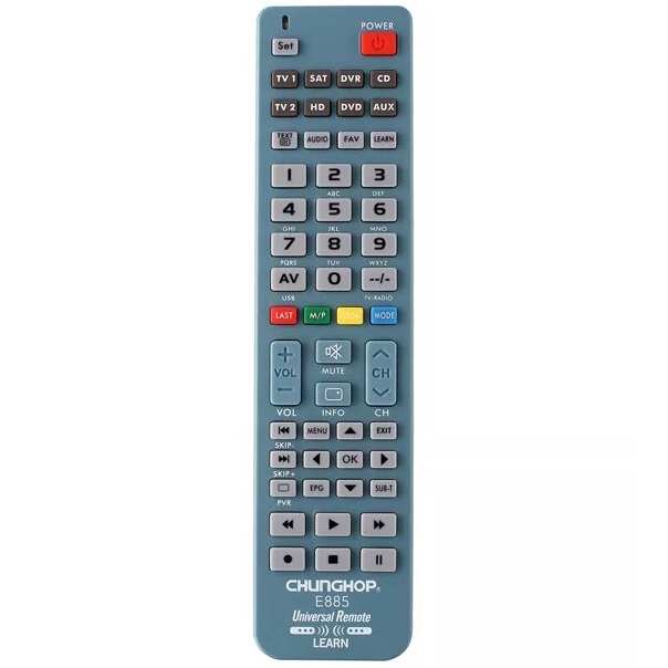 Điều khiển học lệnh Chunghop E885 ra đời để khắc phục nhược điểm trong một căn phòng có quá nhiều điều khiển như ti vi, đầu DVD , đầu kĩ thuật số… sẽ khiến bạn hay bị nhầm lẫn giữa các điều khiển với nhau hay luôn phải sử dụng một lúc mấy điều khiển trên tay, nhưng nay với thiết bị này có thể giúp bạn dễ dàng gộp 8 hoặc nhiều hơn điều khiển hồng ngoại thông thường nằm gọn trong chiếc Chunghop E885 với thao tác học lệnh đơn giản.