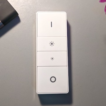 -Điều khiển không dây thông minh Philips Hue Dimmer Switch cho phép điều khiển bóng đèn Philips Hue ở bất cứ đâu trong nhà. Thiết bị có thể gắn lên tường sử dụng băng dính 2 mặt đi kèm. Cho phép điều khiển bóng đèn như công tắc trên thường thông thường hoặc có thể tách ra, sử dụng như một điều khiển remote.