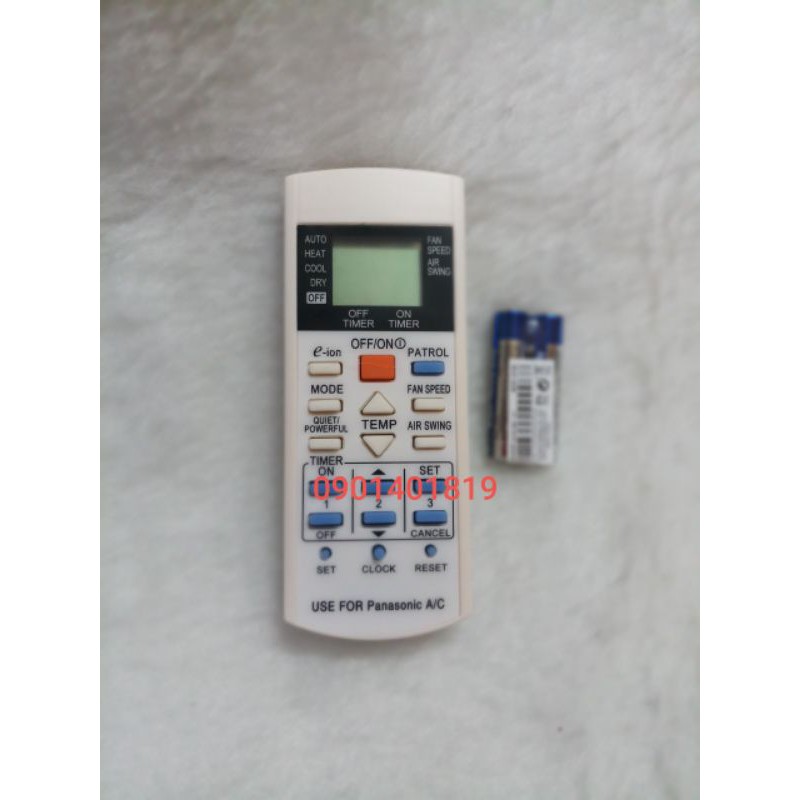 Remote điều khiển máy lạnh Panasonic E - ion, các phím sử dụng bằng tiếng anh dể dàng sử dụng, thích hợp thay thế cho remote cũ đã bị hư, nếu quý khách không sử dụng remote hãy lấy pin ra, tráng để pin chảy nước sẽ nhanh hư remote khác nhé.Bán hàng: shop luôn luôn uy tín chất lượng về sản phẩm hàng đầu.