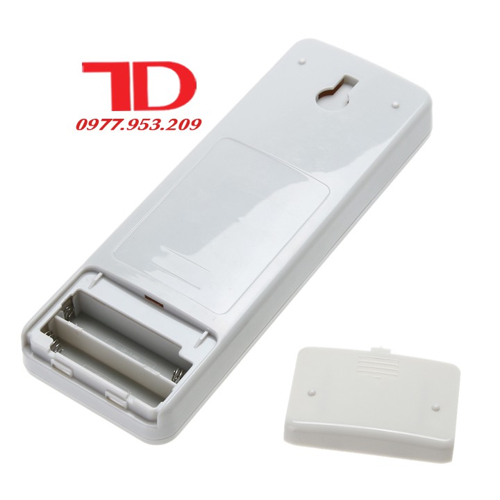 Bộ điều khiển từ xa dùng 2 pin tiểu 1,5V. Nếu không sử dụng máy điều hòa lâu nên tháo pin ra đề phòng pin chảy nước làm hỏng điều khiển từ xa.