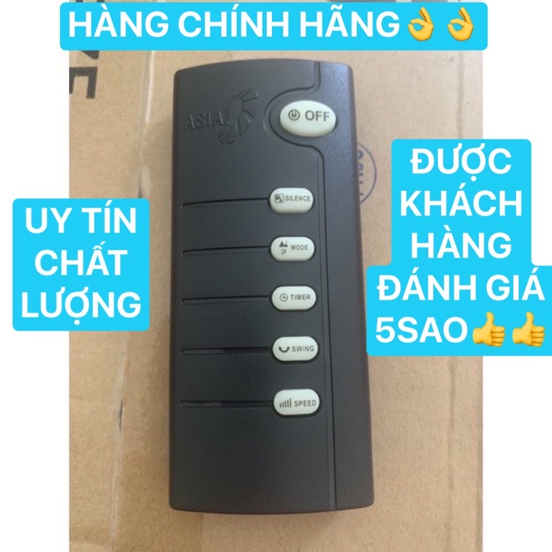 Remote chính hãng của Asia. Sử dụng cho các Model quạt dòng L và D của ASIA như: L16019 D16019 D16013 L16006.Các bạn khi mua Remote chú ý mẫu quạt mình đang sử dụng để đặt đúng loại Remote nha. Hoặc không biết mẫu quạt đang dùng co thể chụp hình nt gửi shop để được hỗ trợ.