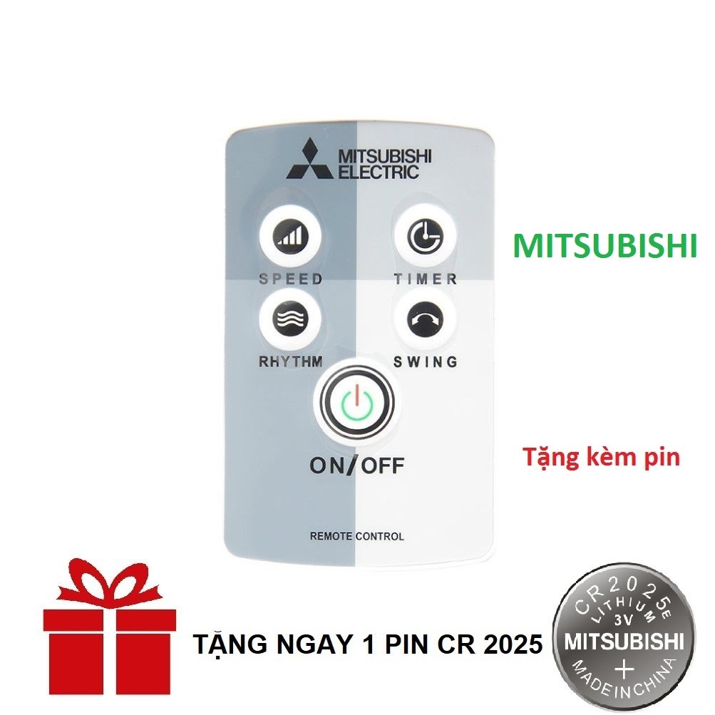 Điều khiển quạt Mitsubishi TẶNG PIN CR2025 loại tốt như khiển zin theo máy - Tặng kèm pin kèm theo điều khiển