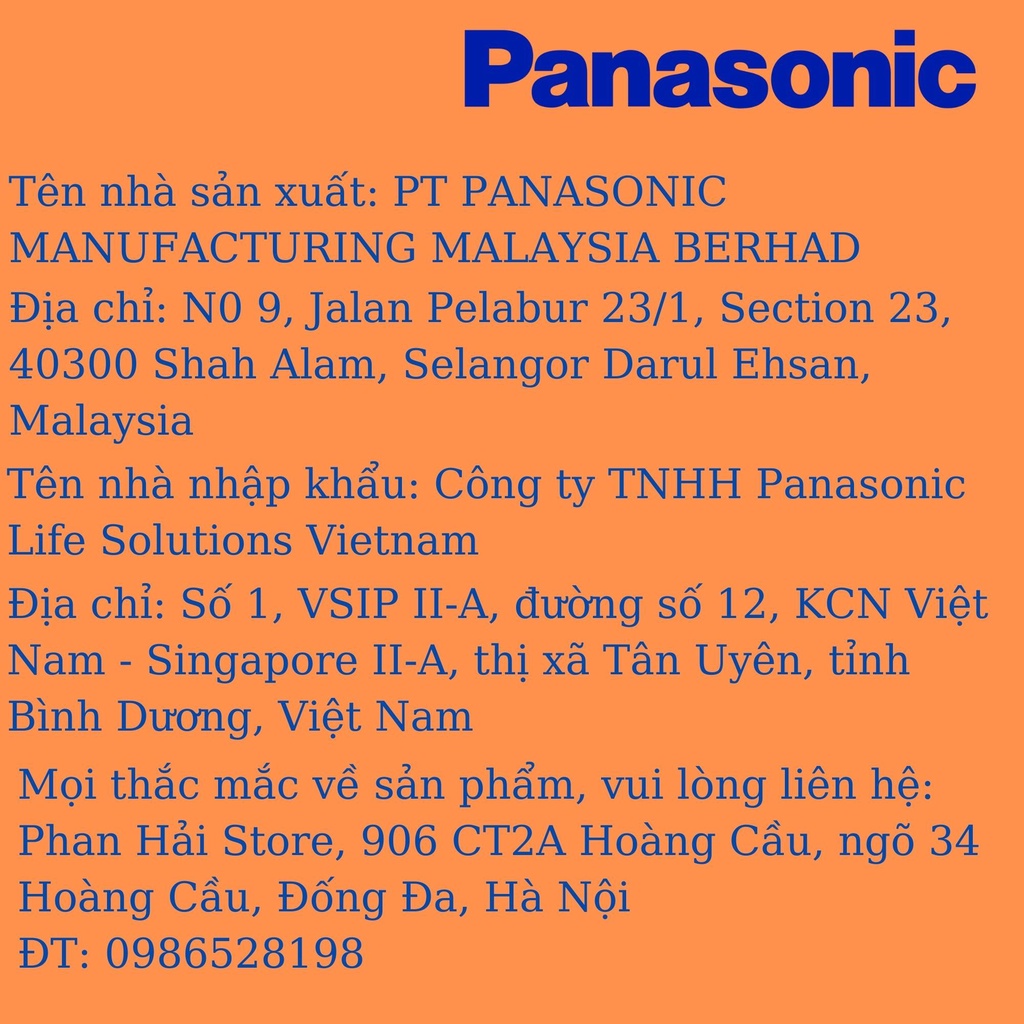 - Hãng sản xuất: Panasonic