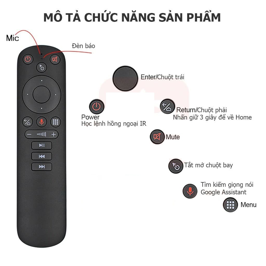 - Điều khiển tương thích với thiết bị sử dụng Android TV, các TV Box chạy Android gốc có thể chức năng voice không hoạt động.