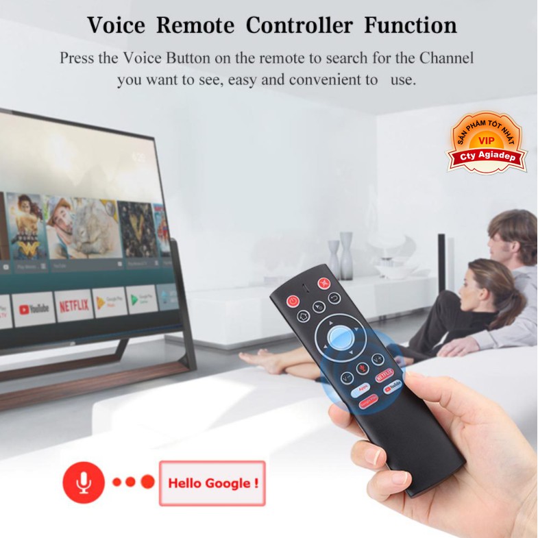 Điều khiển từ xa bằng giọng nói. Bạn chỉ cần bấm vào nút VOICE và ra lệnh bằng giọng nói của mình. Hỗ trợ tất cả ngôn ngữ trên thế giới.