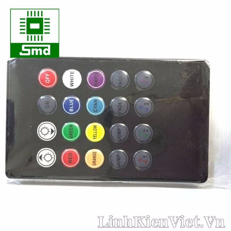Điều khiển RGB music dùng để điều khiển các loại mạch led RGB music từ xa,giúp ta tăng giảm độ sáng, thay đổi màu, hiệu ứng,... của mạch mà không cần