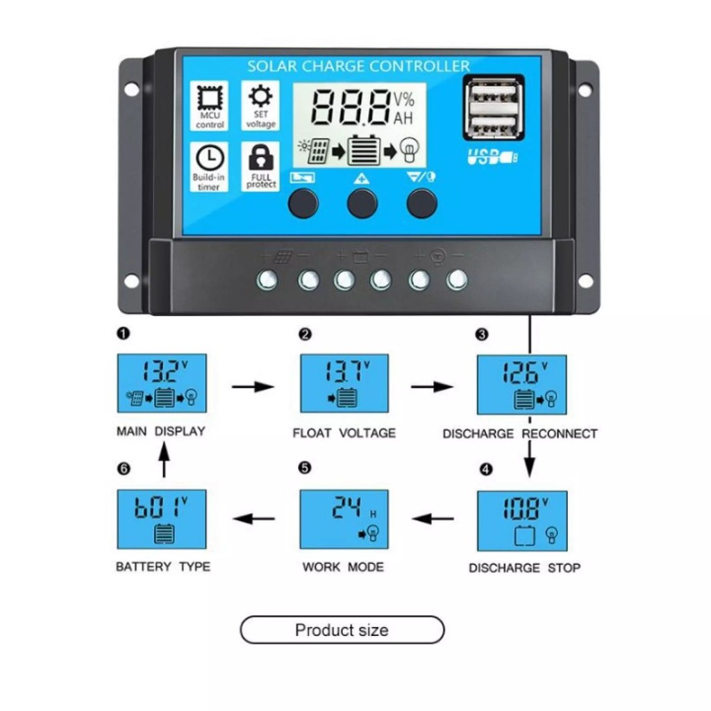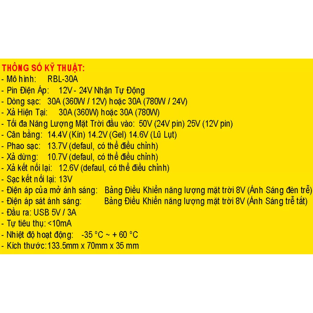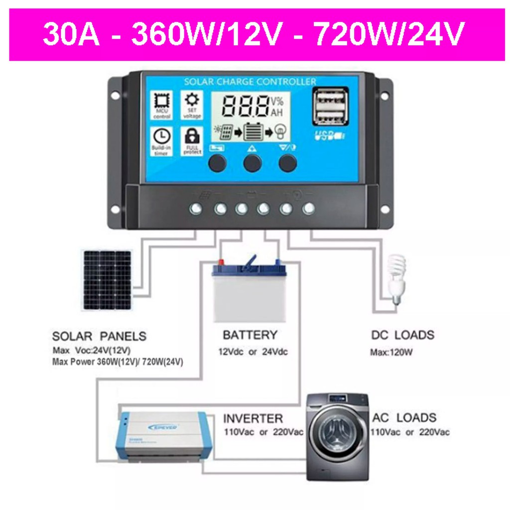 Thiết Bị Điện Gia Dụng > Pin || Điều khiển sạc pin năng lượng mặt trời PWM 30A/12V/24V USB SẠCCòn hàng