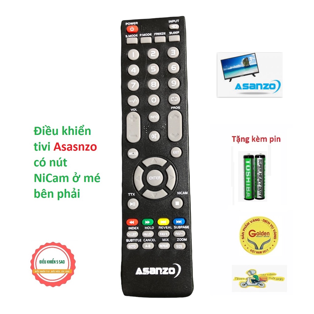 Điều khiển tivi Asanzo có nút INCAM ở mé bên tay phải dùng cho tivi LCD không có internet loại tốt zin theo máy - Tặng p