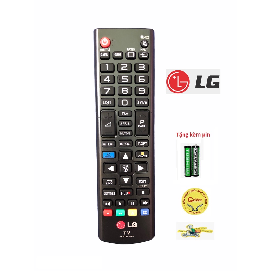 Mô tả sản phẩm :Điều khiển tivi LG AKB73715601 lô gô đỏ chính hãng theo máy - tặng kèm pin- Remote tivi LG smart internet zin theo hãng