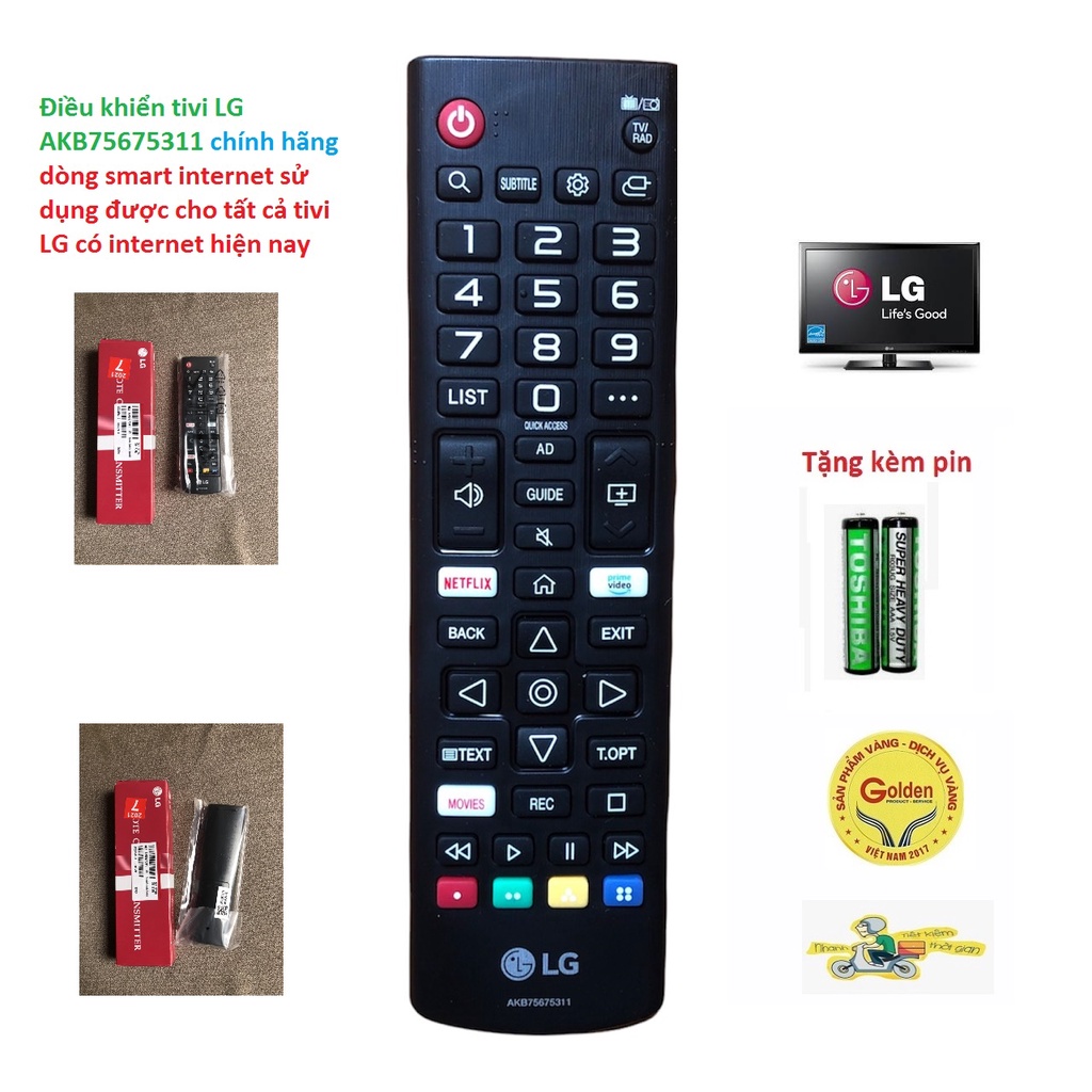 Điều khiển tivi LG AKB75675311 chính hãng full hộp box smart internet+ Sản phẩm được cam kết là hàng chính hãng full box chất lượng cao