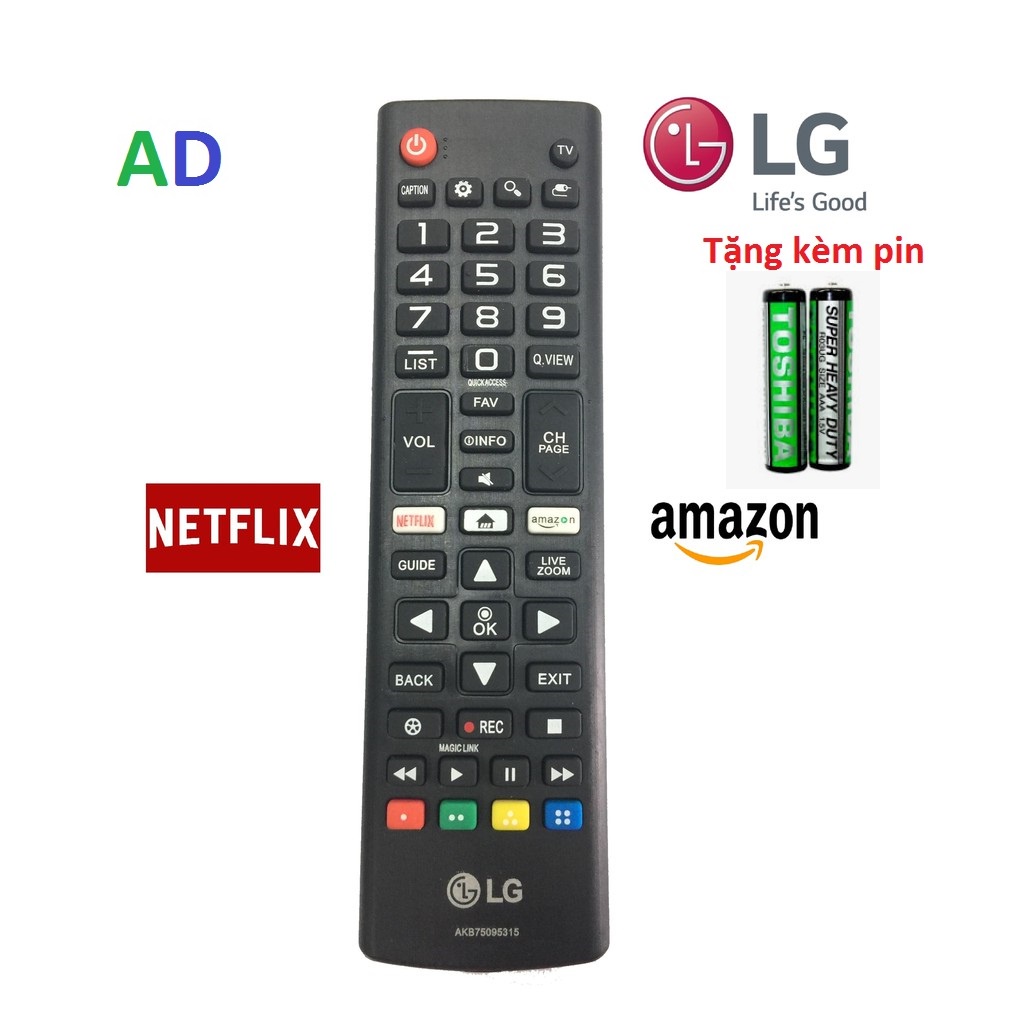 Điều khiển tivi LG NetFlix và Amazon loại ngắn smart internet - tặng kèm pin - Remote tivi LG AKB75095315 loại tốt
