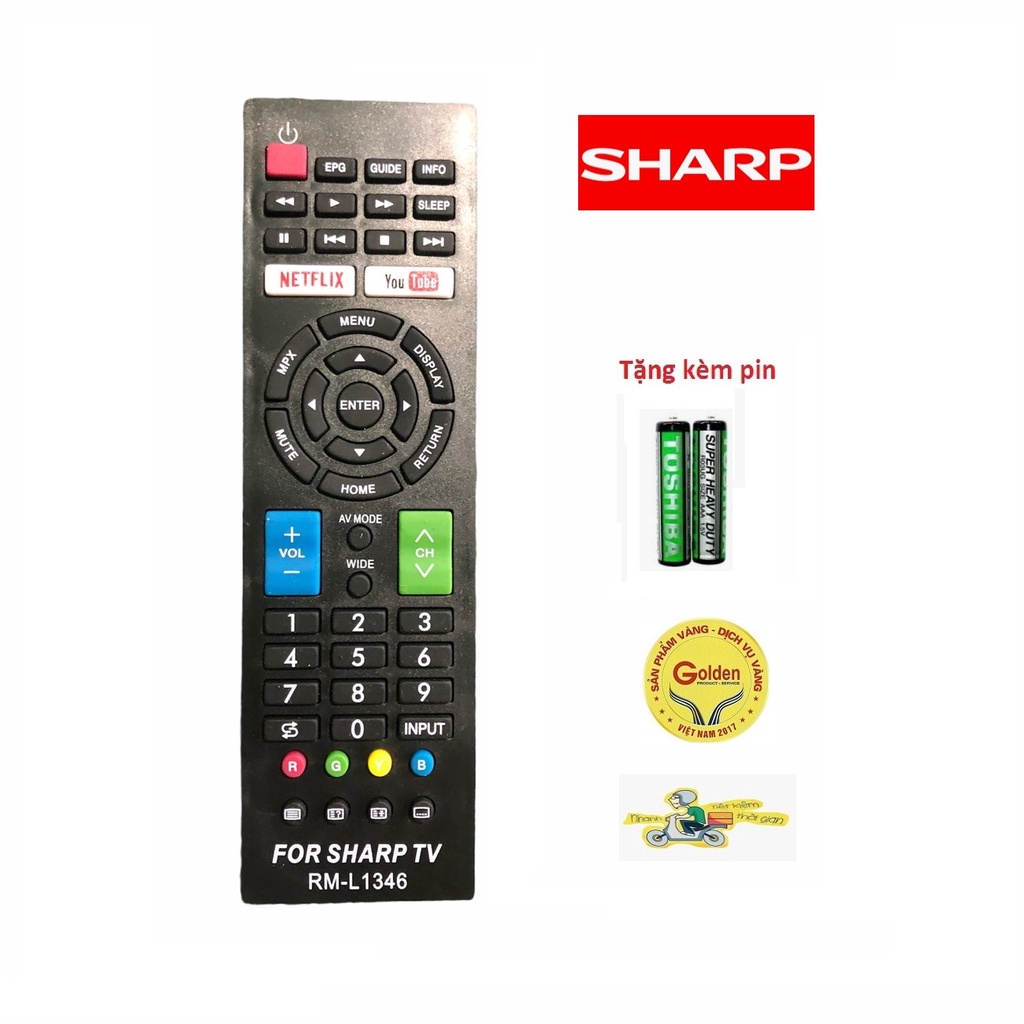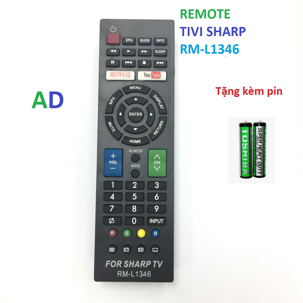 Điều khiển tivi RM-L1346 SHARP - tặng kèm pin - Remote tivi Sharp L1346 loại tốt zin theo máy+ Điều khiển dùng cho nhiều loại tivi Sharp có internet hiện nay
