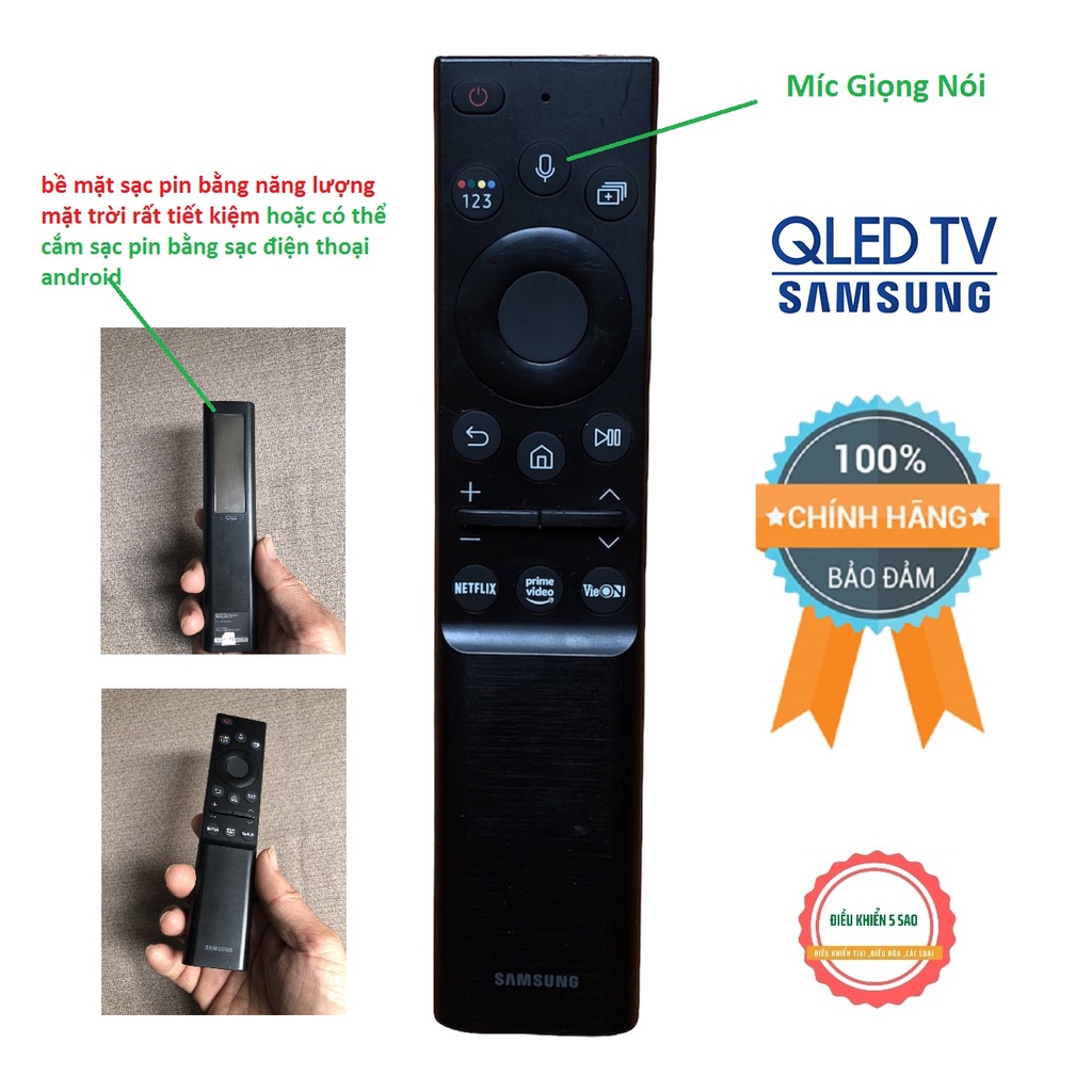 Điều khiển tivi SamSung BN59-01357G dòng tivi Qled có sạc bằng năng lượng mặt trời loại chính hãng xịn sò mới khoảng 90% - Bảo hành 6 tháng - Remote tivi SamSung BN59-01357G Qled có sạc bằng năng lượng mặt trời +Sản phẩm cam kết là chính hãng chất lượng cao ,vỏ nhôm nguyên khối mang lại độ sang trọng và độ bền cao + Đền tiền gấp 2 nếu phát hiện hàng không chính hãng + Có thể được sạc đầy pin bằng năng lượng mặt trời hoặc đơn giản chỉ cần là có ánh sáng như bóng đèn tuýp là sạc được + Có thể dùng sạc của điện thoại android để sạc đầy pin + Sản phẩm chỉ mới khoảng 80-90% và shop cam kết hoạt động tốt và có bảo hành dài hạn + Có thể sử đụng dược cho tất cả các dòng tivi samsung có giọng nói hiện nay vừa tiết kiệm pin vừa sang trọng tội gì không mua phải không quý khách + Phải kết nối blutut với tivi khi lần đầu sử dụng thì mới dùng được chức năng giọng nói thao tác kết nối chỉ cần bấm và giữ 2 nút Back và Nút Play trên điều khiển cùng 1 lúc khoảng 5 giây đến khi nào tivi báo ghép nối thành công là được + Quý khách được bảo hành theo quy định của hãng + Quý khách được đổi trả hoàn tiền sản phẩm nếu không ưng ý +Tặng kèm thêm 1 tháng bảo hành nếu quý khách đánh giá shop 5 sao chất lượng +Trong trường hợp quý khách đặt mua khiển về mà không sử dụng được hoặc bị cong vênh bị vỡ hư hại thì quý khách không nên vội vàng đánh giá xấu cho shop mà hãy bình tĩnh liên hệ với shop để được giải đáp hoặc hoàn tiền hoặc đổi trả sản phẩm được ưng ý *** Lưu ý : Trên thị trường có nhiều loại điều khiển chất lượng khác nhau vì vậy giá thành cũng khác nhau nếu quý khách mua sản phẩm của shop thì shop cam kết sản phẩm là chất lượng loại 1 và có bảo hành theo quy định của hãngGiá MATRIX