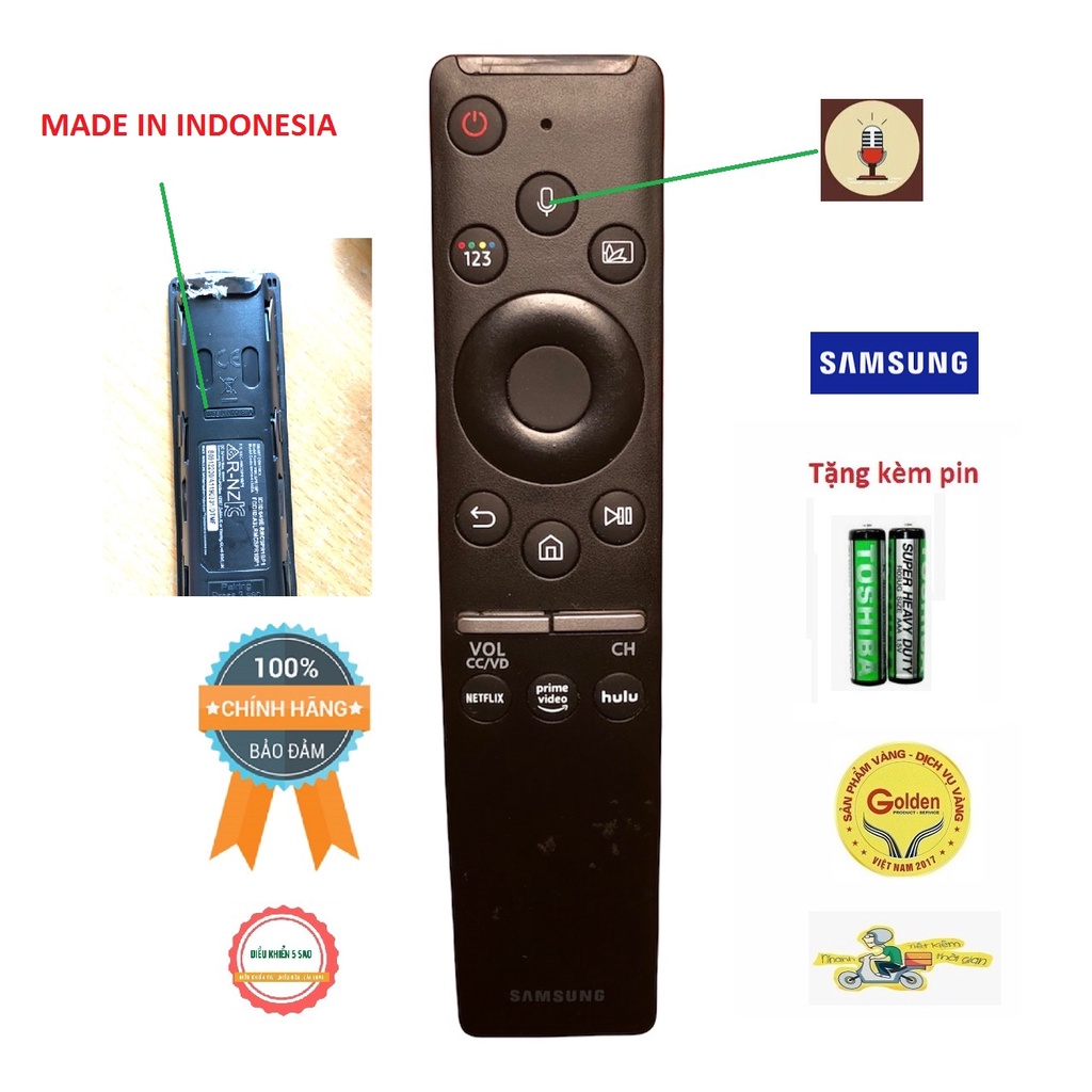 Điều khiển tivi SamSung BN59-01312A có giọng nói hàng chính hãng mới 80-90% có nút Hulu made in VietNam - tặng kèm pin - Remote tivi SamSung BN59-01298D hàng chính hãng - Đầu bấm TV tivi SamSung BN59-01312A loại chính hãng phím bấm êm nhạy + Điều khiển cam kết hàng chất lượng cao made in vietnam hoặc made in indonesia + phím bấm êm nảy và hồng ngoại rất nhạy + Sản phẩm là hàng chính hãng +Được tặng kèm pin chính hãng dung lượng cao gấp 2 đến 5 lầnpin thường + Quý khách được bảo hành theo quy định của hãng + Quý khách được đổi trả hoàn tiền sản phẩm nếu không ưng ý +Tặng kèm thêm 1 tháng bảo hành nếu quý khách đánh giá shop5 sao chất lượng +Trong trường hợp quý khách đặt mua khiển về mà không sử dụngđược hoặc bị cong vênh bị vỡ hư hại thì quý khách không nên vội vàng đánh giá xấucho shop mà hãy bình tĩnh liên hệ với shop để được giải đáp hoặc hoàn tiền hoặcđổi trả sản phẩm được ưng ý +Quý khách nên chọn đúng mẫu điều khiển giống hệt bề mặt vớikhiển ban đầu ở nhà nếu không sẽ không hoạt động được hoặc hoạt động sẽ không đủchức năng ( quý khách nên liên hệ với shop trước để shop tư vấn và gửi sản phẩmđúng chủng loại ) *** Lưu ý : Trên thị trường có nhiều loại điều khiển chất lượngkhác nhau vì vậy giá thành cũng khác nhau nếu quý khách mua sản phẩm của shopthì shop cam kết sản phẩm là chất lượng loại 1 và có bảo hành theo quy định củahãngGiá FEAR