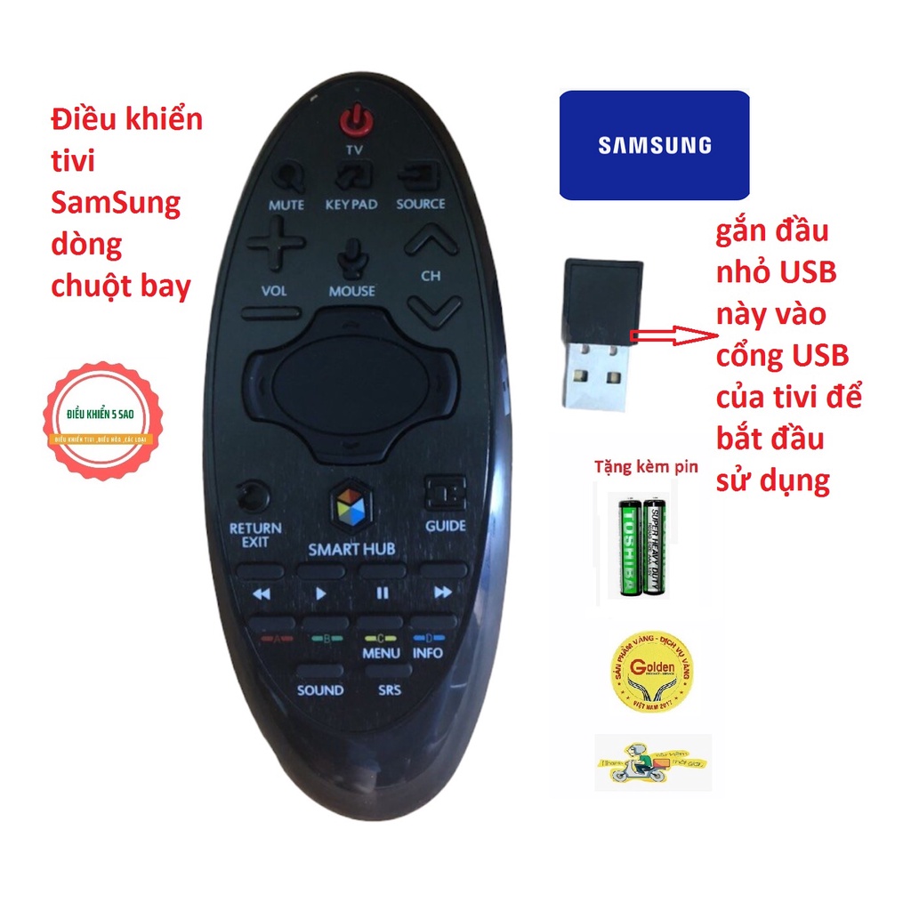 Mô tả sản phẩm :Điều khiển tivi samsung loại chuột bay vào mạng internet thuận tiện dễ sử dụng nhiều chức năng tiện lợi - tặng kèm pin chính hãng - Rejmote SamSung chuột bay - Remote chuột bay tivi samsung loại tốt thay thế đầu bấm samsung zinQuý khách mở gói hàng ra và cắm đầu nhỏ USB màu đen vào cổng USB của tivi sau đó lắp pin vào là sử dụng được luôn