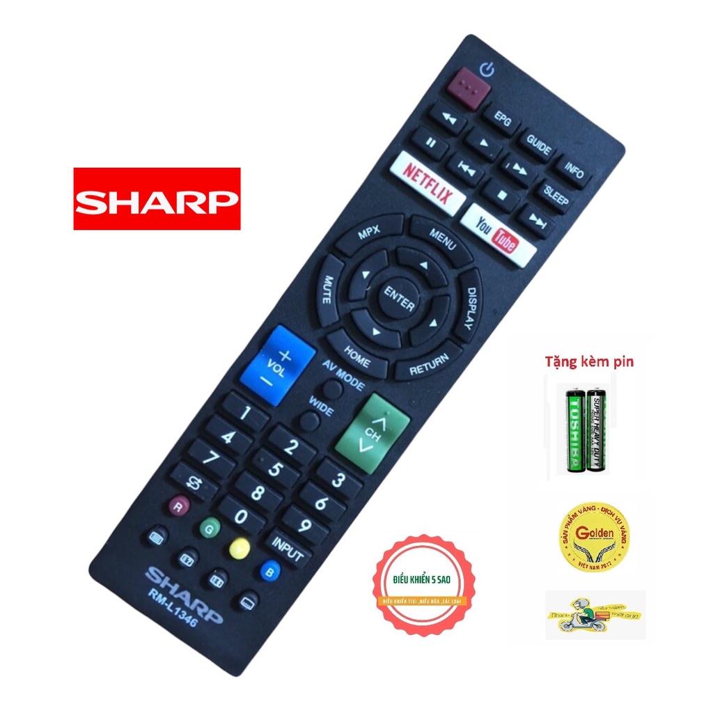 Thiết Bị Điện Gia Dụng > Thiết bị điều khiển từ xa || Điều khiển tivi Sharp RM-L1346 đa năng dùng cho các dòng tivi Sharp internet hiện nay - tặng kèm pin chính hãngCòn hàng