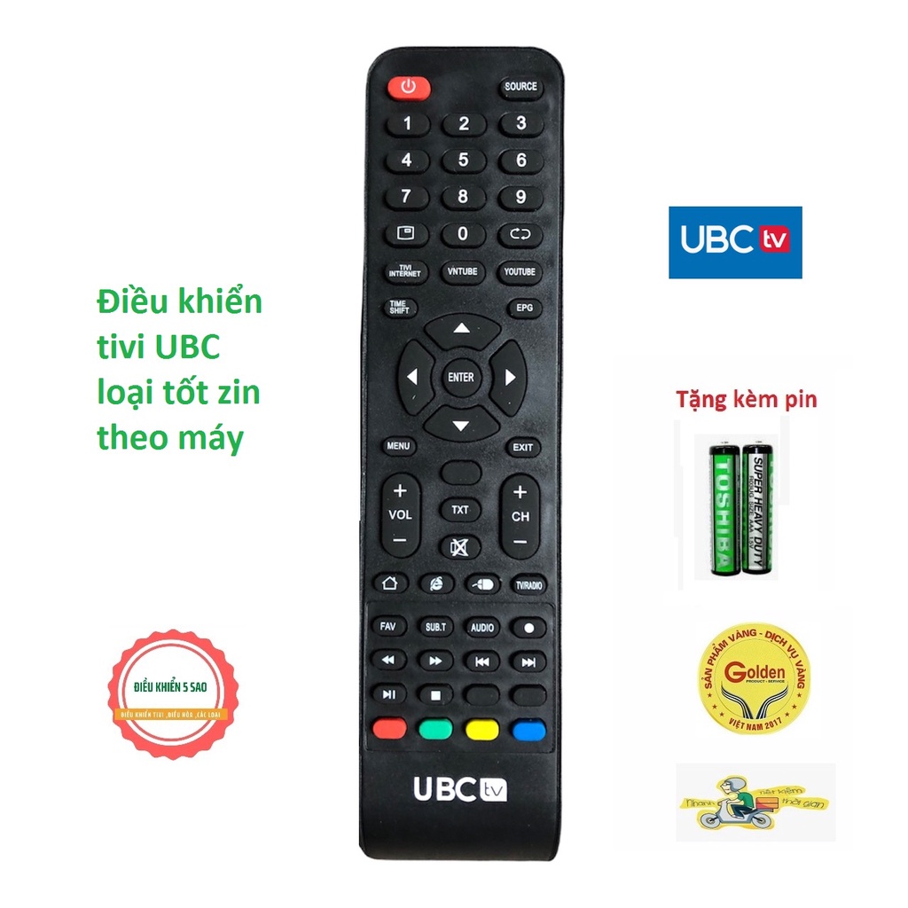 Điều khiển tivi UBC loại tốt zin theo máy - tăng kèm pin - Remote tivi UBC loại tốt lắp pin là dùng được luôn - Đầu bấm tivi UBC loại zin theo máy chất lượng cao+Được tặng kèm pin chính hãng dung lượng cao gấp 2 đến 5 lần pin thường